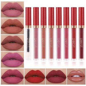 8pcs Matte Liquid Lipstick with Lip Plumper Makeup Set Velvety Long Lasting High Pigmented Nude Waterproof Lip Gloss Kit Girls Women Make Up Gift Set