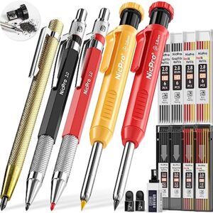 Nicpro 5 Pack Mechanical Carpenter Pencil Set with 76 Refills & Carbide Scribe Tool, Solid Deep Hole Carpenter Markers Woodworking Pencils with Built-in Sharpener for Construction Architect