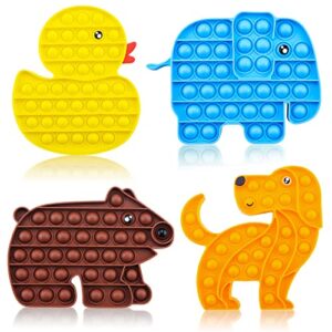 Abesee 4 Pack Pop Fidget Toys, Its Poppers Bubble with Pop Sound Sensory Fidget Toy, Duck Elephant Bear Dog for Kids and Adults Stress Relief, ADHD Autism Silicone Pressure Relieving Toys