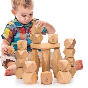 OATHX Montessori Toys Stacking Rocks Wooden Grimms Blocks Building Preschool Balancing Stones for Toddlers 1-3 Girls Boys Sensory Natural Wood 20pcs Large Size