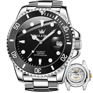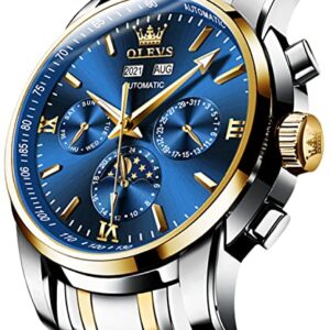 OLEVS Automatic Mechanical Watches for Men Self Winding no Battery Stainless Steel Strap Luxury Moon Phase Luminous Waterproof Wrist Watch