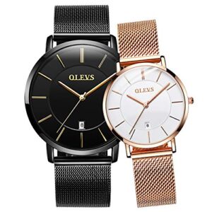 OLEVS Couples Watches for Men and Women Ultra Thin Quartz Analog Wrist Watches Casual Stainless Steel His and Hers