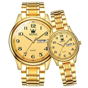 OLEVS Couple Watches Men and Women Romantic Couple Pair Quartz Watches Valentines Couple Matching Watches Stainless Steel Calendar Date Waterproof His and Her Watches for Couples