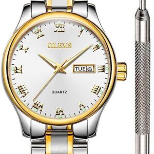 OLEVS Classic Watches for Women Analog Quartz Watch Stainless Steel Rugged Waterproof Watches Roman Numeral Unique Calendar Date Business Wrist Watch