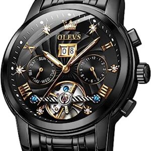OLEVS Automatic Mechanical Watches for Men Self Winding with Date Week Display Waterproof Luminous No Batteries Watches(Blue&Green&Black)
