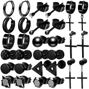 ONESING 15 Pairs Black Earrings for Men Black Stud Earrings Mens Earrings Stainless Steel Earrings for Men Women Jewelry Piercing Men Earrings Set