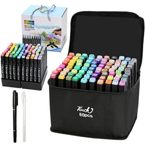 OUSHGO 80 Colors Alcohol Markers Pen Set Dual Tip Markers Twin for Teens Adult Coloring Book Artist Permanent Markers Drawing Art Graphic Marker and Highlighting Illustration (Black Shell)