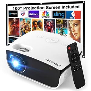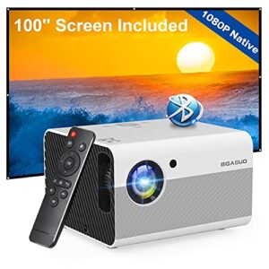 Outdoor Movie Projector Bluetooth 5.0 – BIGASUO Native 1080P Projector with Digital Zoom&HiFi Stereo, 280ANSI Home Portable Projector Compatible HDMI,USB,AV,TV[100Screen Included]