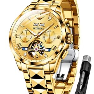 OUPINKE Swiss Brand Mens Automatic Watches Skeleton Tourbillon Self Winding Luxury Sapphire Crystal Business Dress Wristwatch