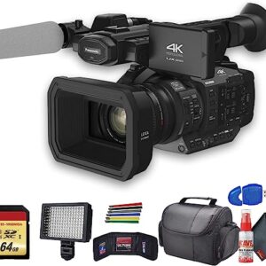 Panasonic AG-UX180 4K Professional Camcorder (AG-UX180PJ8) with Padded Case, LED Light, 64GB Memory Card and More Base Bundle