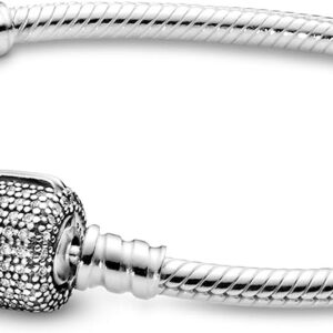Pandora Jewelry Moments Sparkling Pave Clasp Snake Chain Cubic Zirconia Bracelet in Sterling Silver