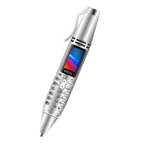 Pen Mini Cell Phone Bluetooth Dialer 0.96″ Tiny Screen Mobile Phone Support GSM Dual SIM Max 32G TF Card with Camera Flashlight Radio Music Player Rechargeable (Silver)