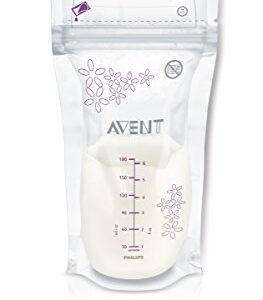 Philips AVENT Breast Milk Storage Bags, Clear, 6 Ounce, 50 Pack, SCF603/50
