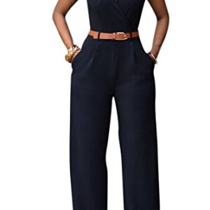 Pink Queen Womens Button Up Printed Long Wide Leg Pant Party Jumpsuits with Belt
