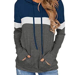 PINKMSTYLE Women Casual Color Block Hoodies Tops Long Sleeve Drawstring Pullover Sweatshirts with Pocket(S-XXL)