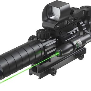 Pinty 2.5-10×40 Red Green Illuminated Mil-dot Tactical Rifle Scope with Red Laser Combo – Green Lens Color
