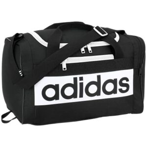 adidas Defender 4 Small Duffel Bag, Black/White, 11.75″x20.5″x11″
