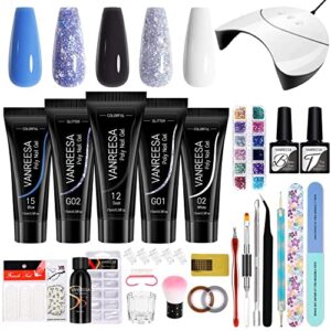 Poly Nail Gel Kit, 5 Pcs Poly Nail Extension Gel Set with 36W U V LED Nail Lamp VANREESA Soak Off Top & Base Coat Gel Nail Starter Kit Gift for Women