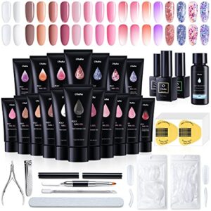 Poly Nail Gel Kit Ohuhu: 18 Colors Nail Gel Kit – Enhancement Builder with 4 Temperature Color Changing Extension – 10 Regular Color and 4 Glitter Color – Poly Gel Kit Gift for Lover Girl Mother Women
