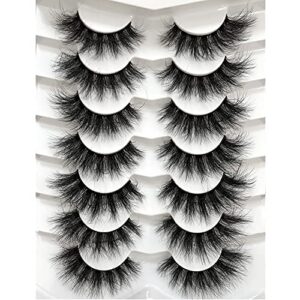 Pooplunch False Eyelashes Cat-Eye Fluffy Faux Mink Lashes 8D Wispy Lashes 7 Pairs Pack Dramatic Long Thick Volume Fake Eye Lash Multipack