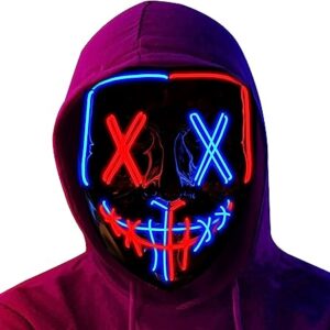 Poptrend Halloween Mask LED Light up Mask Scary mask for Festival Cosplay Halloween Costume Masquerade Parties,Carnival,Gift (Red+Blue)