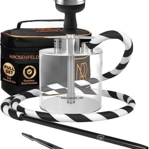 Portable Hookah Set with Everything – YADO Acrylic Hookah To Go with Big HOOKARTIS Hookah Charcoal Holder Heat Management Device + Black Silicone Hookah Bowl Set + Bag Shisha Hookah Set with Stainless Steel Stem