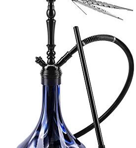 Premium Hookah Set 26″ – Best Original Aluminum Hookah Kit with Stable Glass Vase – Washable Silicone Bowl and Hose with Spring and Diffuser by NinwoO