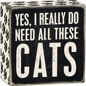 Primitives by Kathy Word Box Sign, 4″ Square, Yes, Cats