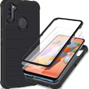 Probeetle Galaxy A11 Phone Case with HD Screen Protector Heavy Duty [3 Layer] Hybrid Shock Proof Protective Rugged Bumper PC and TPU Cover Case for Samsung Galaxy A11 Phone(Black/Black)