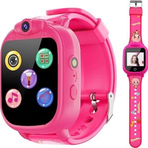 PROGRACE Kids Watch for Girls – 90°Rotatable Camera IPS Touch Screen Smart Watch for Kids Gifts for 4-12 Year Old Girls Toddler Music Radio Pedometer Alarm Clock Flashlight Games Sport Fitness Watch