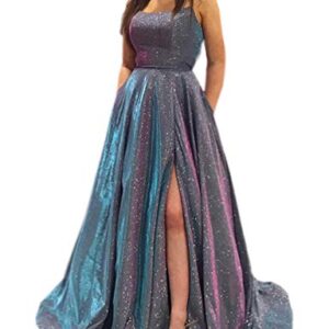 Prom Dresses Long A Line with Pockets Formal Evening Ball Gowns Side Slit Glitter Party Dress 2022