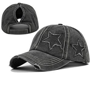 ProMindFun Womens Ponytail High Messy Bun Hats Distressed Baseball Caps Unconstructed Washed Dad Hat Girls Trucker Ponycaps