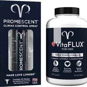 Promescent Delay Spray for Men (7.4ml) + VitaFLUX Triple Power Nitric Oxide Supplement for Male Performance, Lidocaine Spray to Last Longer with Men’s Daily Vitamin Packed with Amino Acids for Stamina