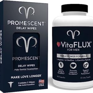 Promescent Delay Wipes Sexual Enhancer for Men to Last Longer in Bed + VitaFLUX Triple Power Nitric Oxide Supplement for Male Performance, Stamina, Energy, Recovery – Increase Duration & Performance