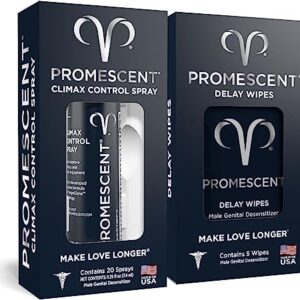 Promescent Delay Spray for Men (2.6ml) for Men to Last Longer in Bed + Promescent Delay Wipes (5-Pack) – Increase Duration, Performance, and Stamina – Extended Climax Control, Perfect for Home & Away