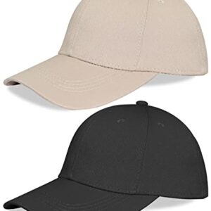 QINGLER 2 Packs Baseball Cap Golf Dad Hat for Men and Women, Original Classic Low Profile Cotton Hat Men Women Baseball Cap Dad Hat Adjustable Unconstructed Plain Cap, Black and Cream-Coloured