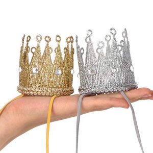 Qishare Baby Photo Prop Crown Elastic Headbands, 2Pcs Princess Tiara Crown Birthday Hat for Baby Boy Girl, Party Hat for Women (Gold+Silver)