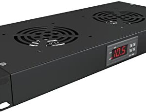 Rack Mount Fan – 2 Fan Server Cooling System – 1U 19″ Rackmount Cabinet Panel Adjustable Temperature Control (Digital Heat Monitor Display) Sensor Alarm (Overheat Air Flow Top Exhaust) Tupavco TP1721