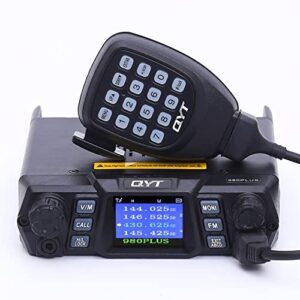 QYT KT-980PLUS 50 Watt Dual Band Four Display Car Mobile Radio VHF/UHF 144-148/420-450MHz Quad-Standby Mobile Radio Amateur (Ham) Two Way Radio with Free Programming Cable