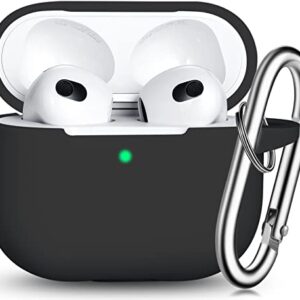 R-fun AirPods 3 Case Cover, Silicone Protective Accessories Skin with Keychain Compatible with Apple AirPod 3rd Generation 2021 for Women Men Girls Boys,Front LED Visible-Black