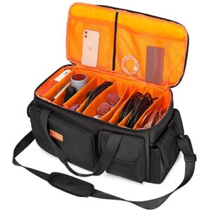 Rabjen Large Capacity DJ Cable File Bag with Detachable Hard PE Dividers Padded Shoulder Strap, Professional Travel Gear Bag for Musical Instrument and Accessories (Dark Black)