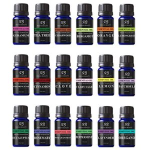 Radha Beauty Aromatherapy 18 Essential Oils (Lavender, Tea Tree, Peppermint, Lemongrass, Orange, Eucalyptus, Rosemary and more) Set, Candle Making, Soaps, Bath Bombs, and Massage