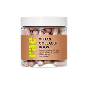 Rae Wellness Vegan Collagen Boost – Natural Collagen Supplement with Vitamin C and Bamboo for Healthy Hair, Skin, and Nails – Vegan, Non-GMO, Gluten-Free – 60 Caps (30 Servings)