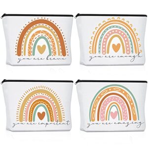 Rainbow Cosmetic Bag 4 Pieces Inspirational Quotes Canvas Cosmetic Bags Bulk You Are Amazing Loved Beautiful Kind Makeup Bag Personalized Purse Pouch for Women Girl Teacher Gift(Heart)