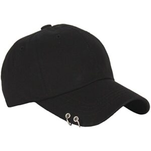 RaOn B160 Punk Silver Ring Piercing Rock K-POP BTS Cotton Basic Ball Cap Baseball Hat Truckers