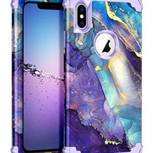 Rancase Compatible with iPhone Xs Max Case,Three Layer Heavy Duty Shockproof Protection Hard Plastic Bumper +Soft Silicone Rubber Protective Case for Apple iPhone Xs Max 6.5 inch,Purple