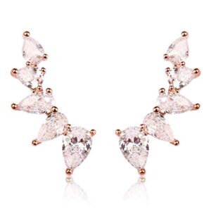 RIAH FASHION Sparkly Rhinestone Pave Ear Crawler Earrings – Delicate Cubic Crystal Earlobe Cuff Climber Floral Petal, Leaf Branch, Feather, Star, Geometric