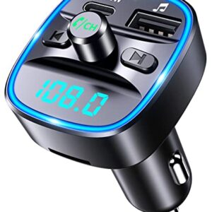 RIWUSI Bluetooth V5.0 FM Transmitter for Car, Type-C PD 30W Quick Charging Bluetooth Car Adapter with Hands-Free Calling, Wireless FM Radio Receiver Music Player/Car Kit Support SD Card & USB Disk