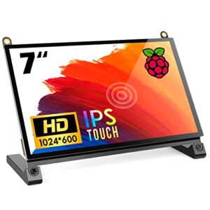 ROADOM Raspberry Pi Touchscreen Monitor,Upgraded 7 IPS 1024X600 Dual-Speaker,USB HDMI Portable Monitor Capacitive Pi Display,Compatible with Raspberry Pi 3b+/Raspberry Pi 4b, Windows,Drive-Free