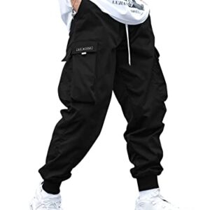 Romwe Men Flap Pocket Drawstring Elastic Waist Letter Graphic Street Cargo Pants